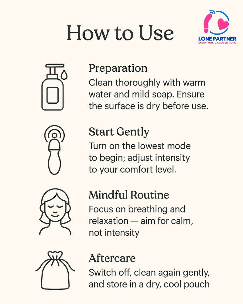 An integrated vibrating unit delivers multiple intensity levels, allowing users to customize their wellness routine according to preference. The soft silicone material feels smooth on the skin, helping reduce tension while promoting mindful self-care. Lightweight and easy to handle, it is suitable for both beginners and experienced users.